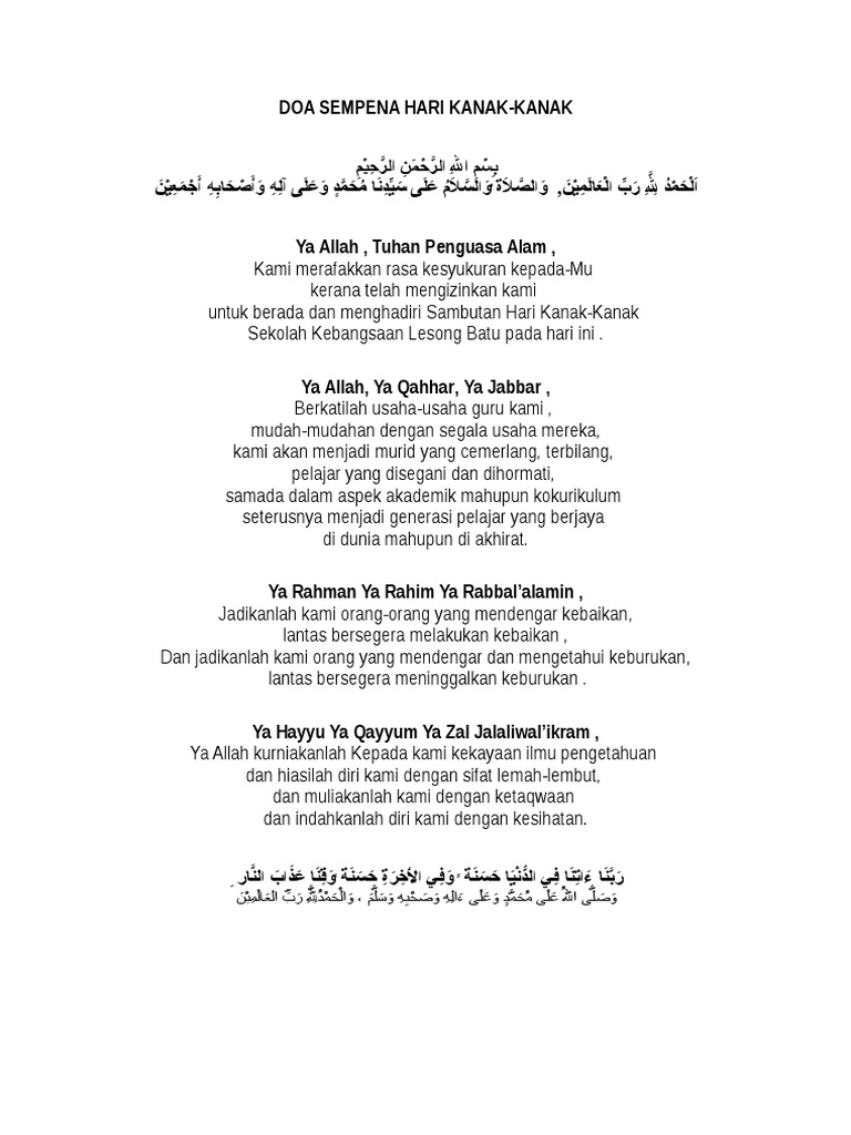 0 Response to "Doa Majlis Sambutan Hari Kanak Kanak"